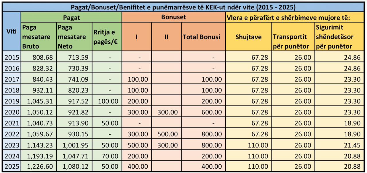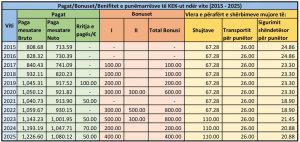 Për ilustrim dhe transparencë, bazuar në të dhënat zyrtare të Burimeve Njerëzore, bashkëngjitur gjeni tabelën me pagat, bonuset dhe përfitimet e punonjësve ndër vite.